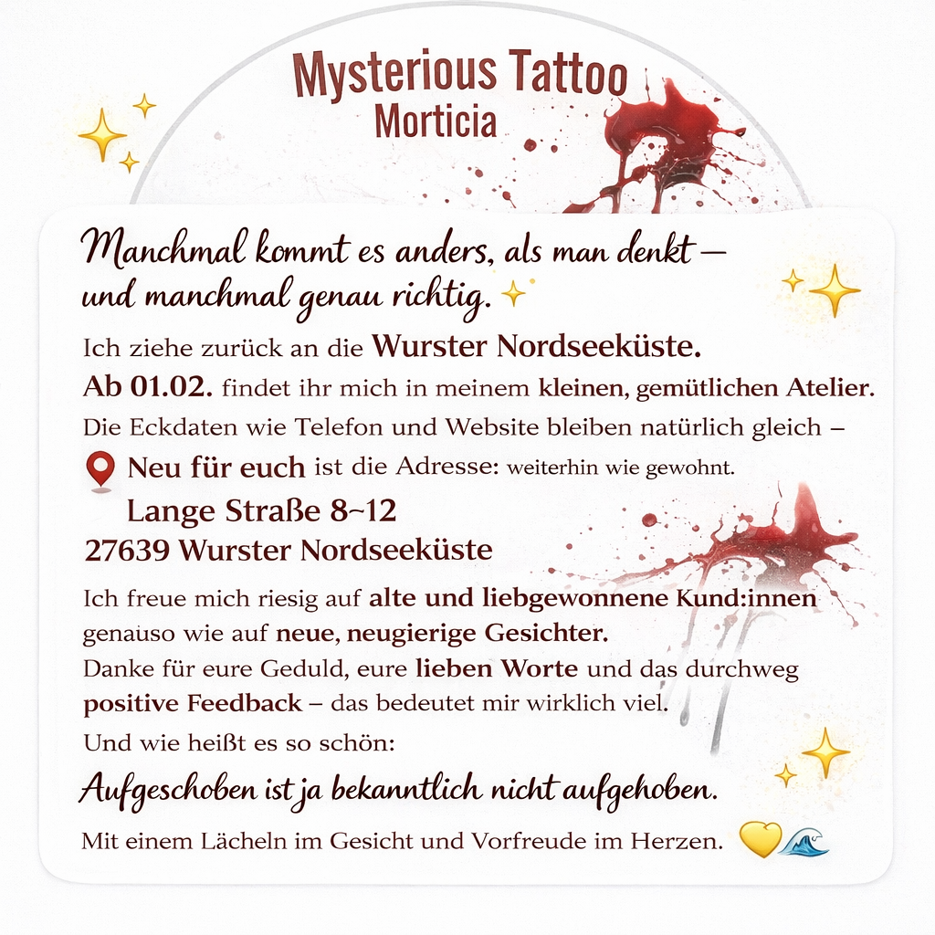Mysterious Tattoo ist im Aufbau 😉 am neuen Standort.